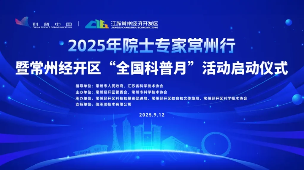 2025年9月12日,“全国科普月”暨院士专家常州行活动启动仪式在常州经开区顺利举行。作为本地推动校地合作、助力科技创新的代表性企业,信承瑞技术有限公司深度参与此次活动筹备,凭借其此前搭建的院士工作站资源,为院士专家与地方的深度对接提供支持,成为连接高校智力、政府需求与公众科普的重要纽带。